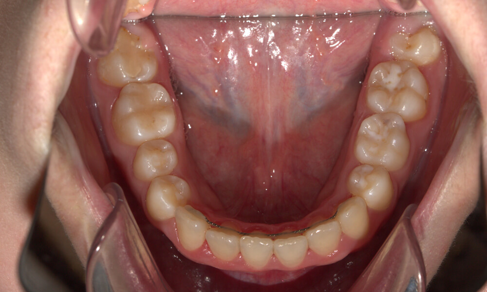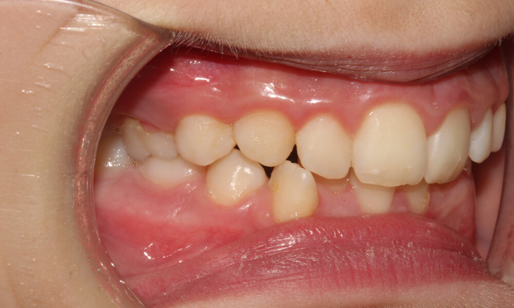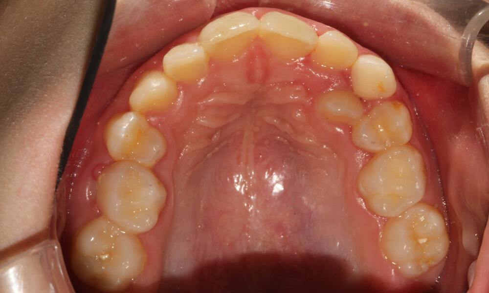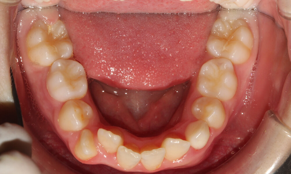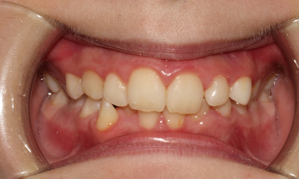 Tratamento ortodôntico com aparatologia fixa multibrackets, com grande apinhamento dentário e iniciado em fase de dentição mista.